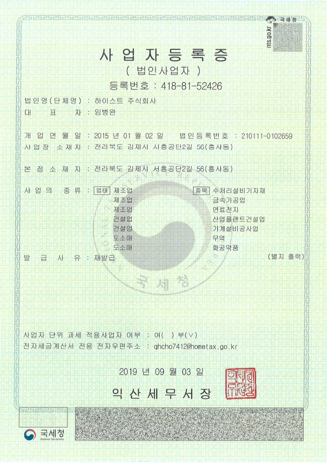<본사, 공장, 연구> 우)54366 전라북도 김제시 서흥공단 2길 56 / 전화 : 063-544-2935 / 팩스 : 063-544-2936